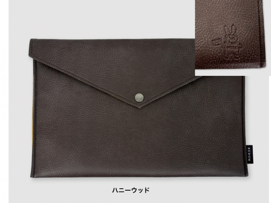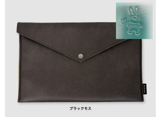 「REDOW」はウルトラファブッリックス・グループの製造過程で発生する合成皮革のロス素材を再利用するアップサイクル・プラットフォームです。14インチノートパソコンが収納できるPCケースでカラー展開は4色!ブラックモスとブルーバーはカバー内側にえこぴょんが型押しされています。ハニーウッドとラテウッドはカバー裏面にえこぴょんが型押しされています。